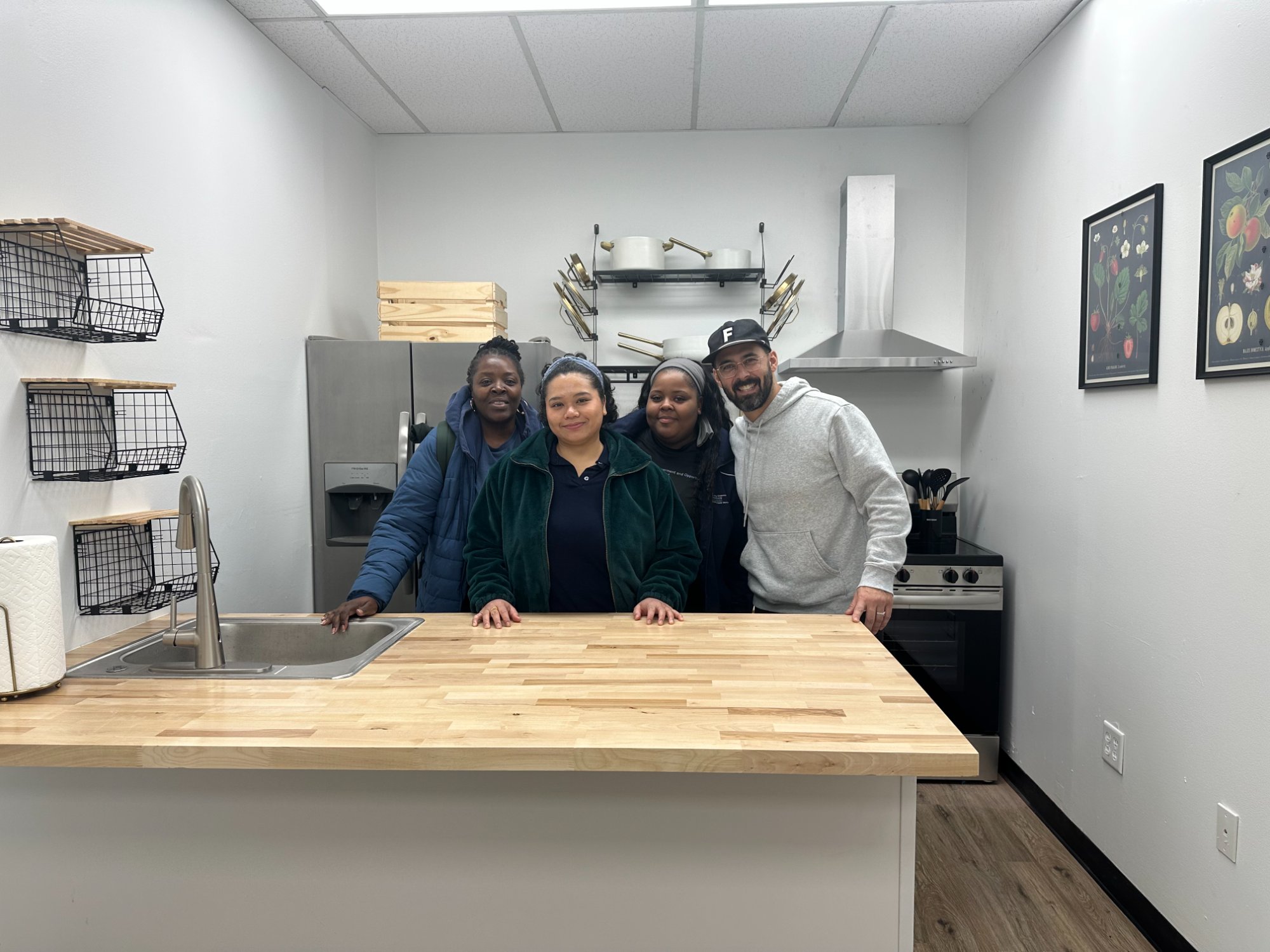 The FareRx Teaching Kitchen is a community-driven clinical space that intentionally does not feel clinical. Members sit around a real kitchen table, not in an exam room. The space is bright, welcoming, and designed to feel like home.