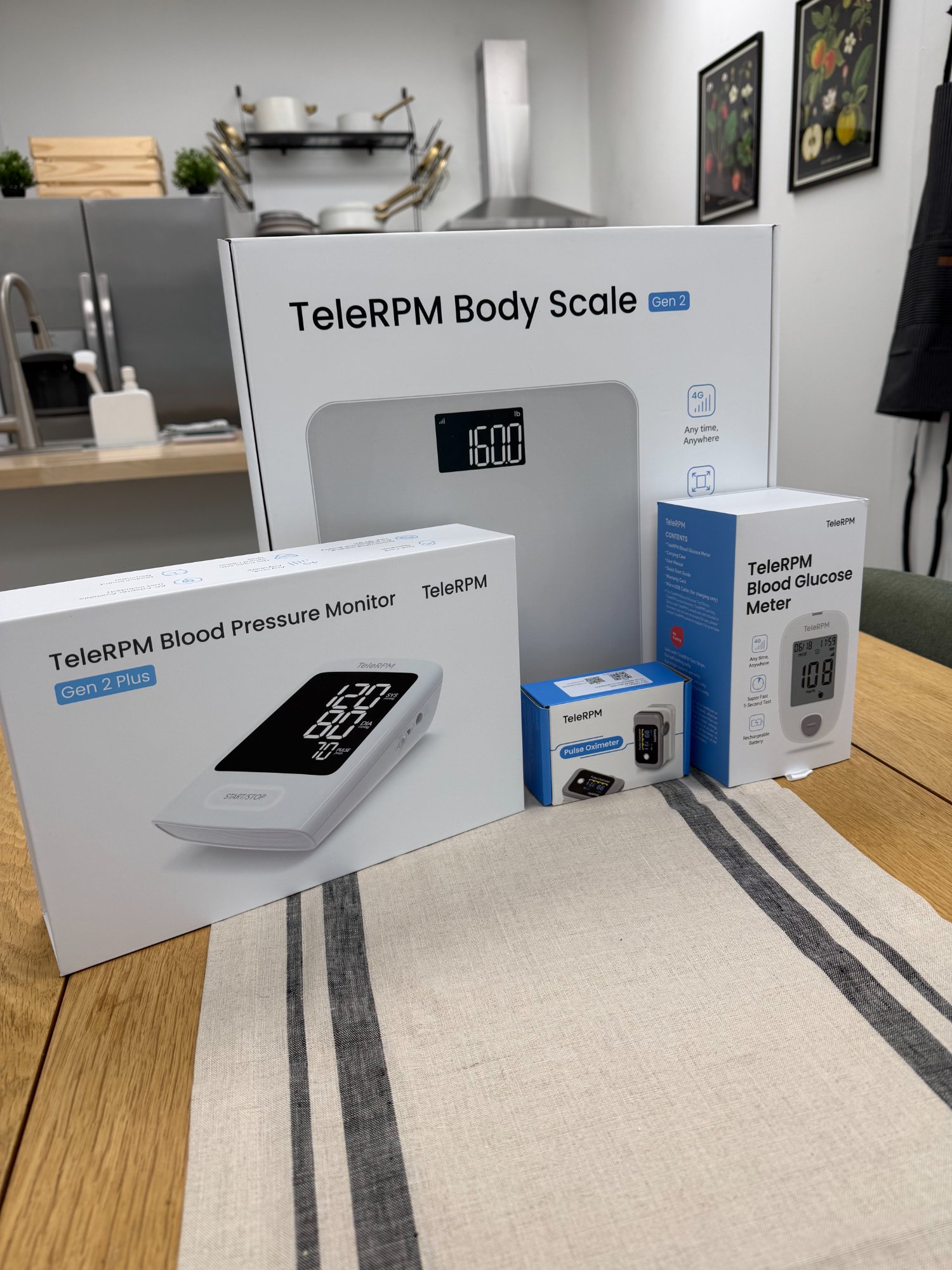 Cellularly connected devices — no Wi-Fi, no Bluetooth, no setup. Members take readings at home. Data flows to the care team automatically. Blood pressure, glucose, weight, and pulse oximetry monitored in real time.